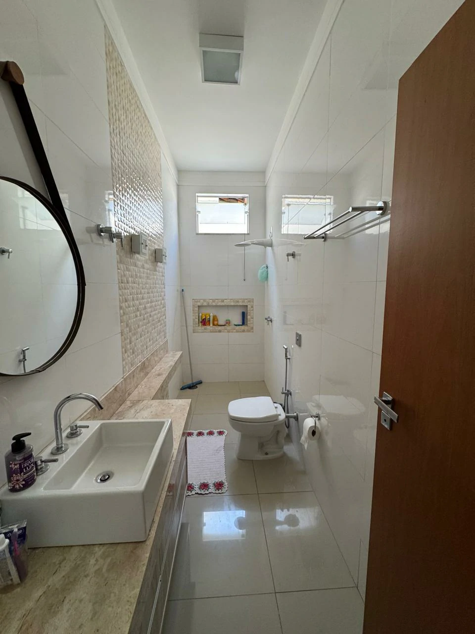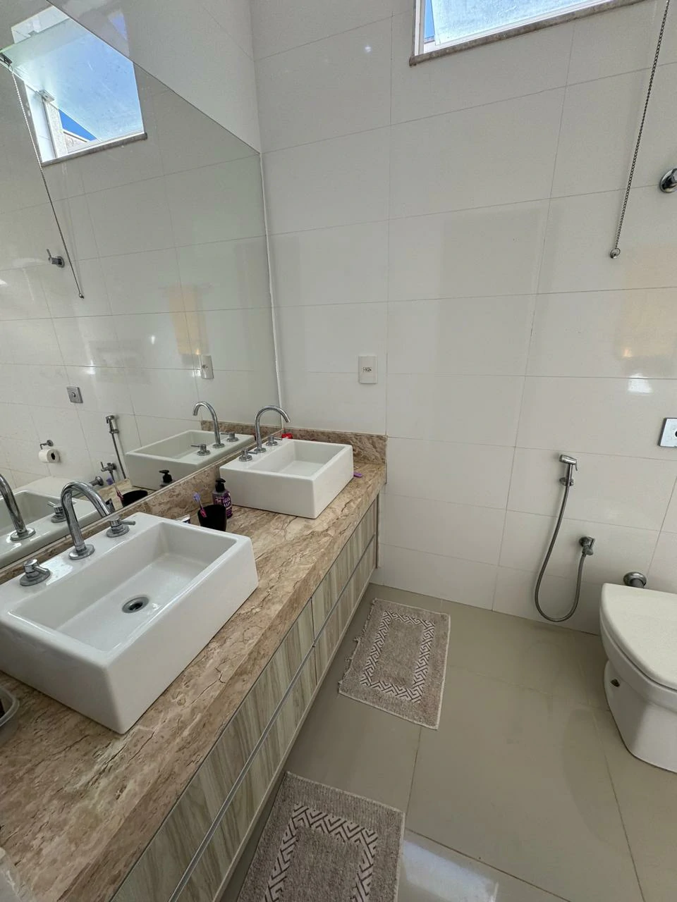 3 dormitórios, sendo 1 suíte com cuba dupla e dois chuveiros